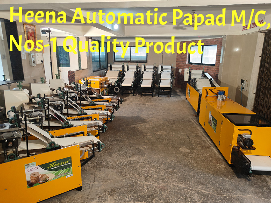 For the past 16 years, we have been offering our customers a wide range of Automatic Papad Machine, Automatic Appalum Machine, Automatic Roti Machine and Automatic Chapati Machine, Masala Kandap with 2 Hammer. Fabricated using M.S. channel and stainless steel, all our machines are user friendly and are as per the safety standards laid by Indian and International Food Machinery Law. Further, with our flawless quality machines and ethical business standards, we have got the trade mark name "Heena" registered in 2004. These factors have enabled us in garnering reputed customers like Step Mushrooms and Star Products.